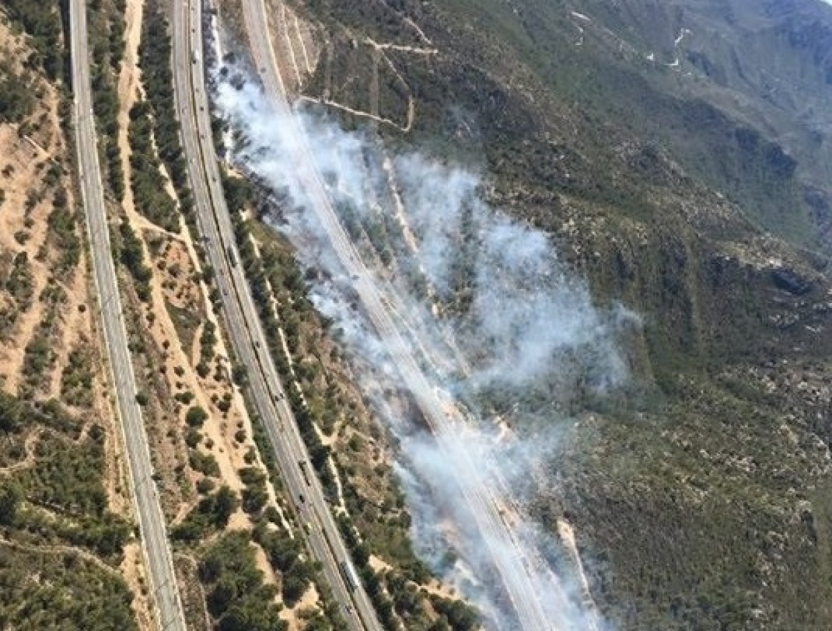 Una decena de dotaciones terrestres y cinco medios aéreos de los Bombers están trabajando en la extinción del fuego en los márgenes de la autopista, que se ha dado por estabilizado sobre las 16.20 horas.