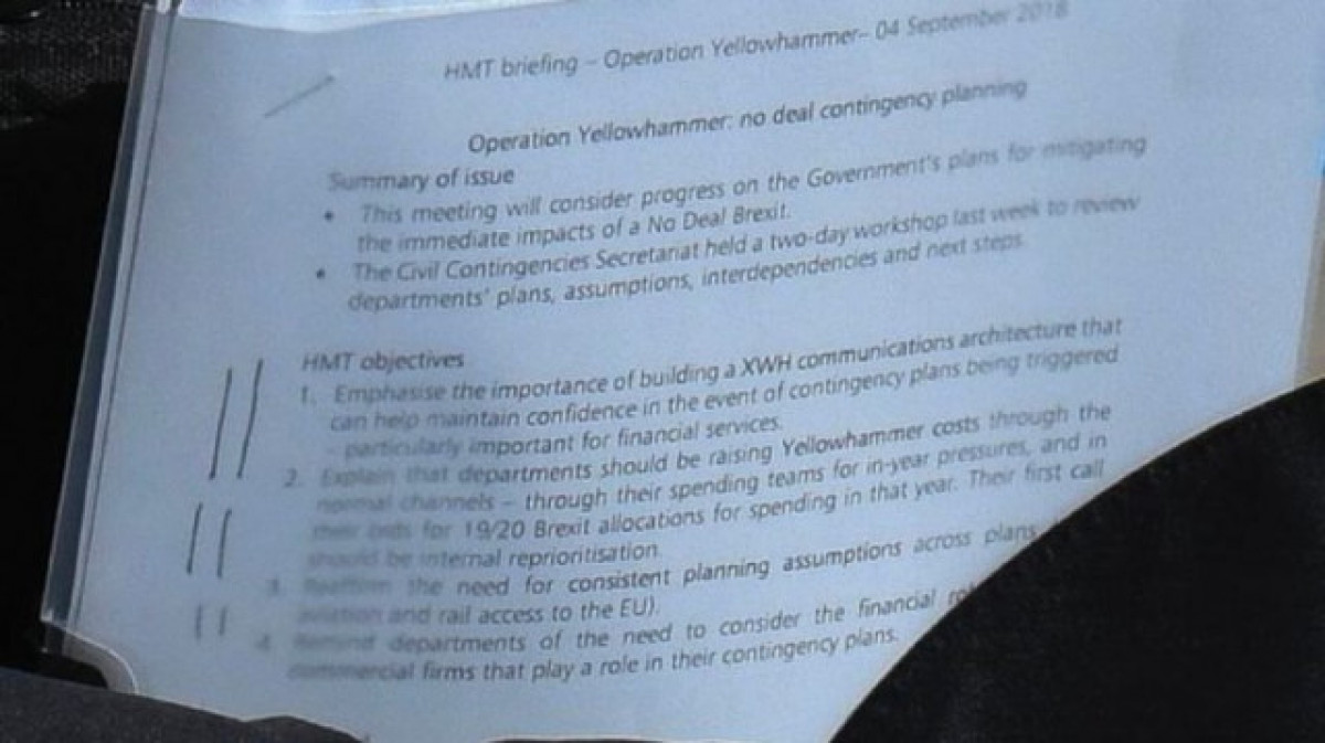 Aunque algunos detalles confidenciales de la "Operación Yellowhammer" -el nombre del plan de contingencia del Gobierno británico en caso de que el Brexit no avance- ya habían sido publicados en los medios de comunicación, el documento se publicó oficialmente este miércoles 11 de septiembre.