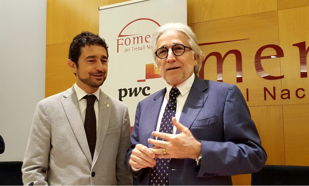 El conseller de Territorio y Sostenibilidad, Damià Calvet, y el presidente de Foment del Treball, Josep Sánchez Llibre / EP