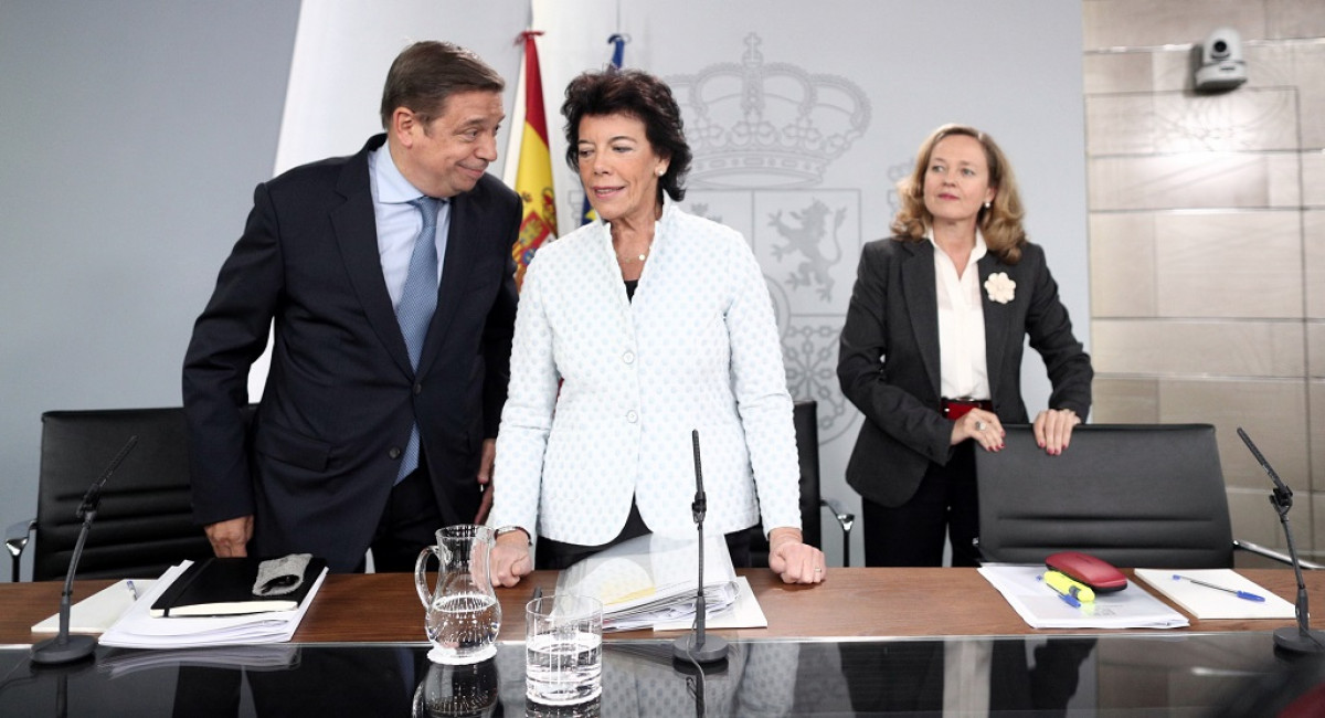 Luis Planas, Isabel Celaá y Nadia Calviño/ EP