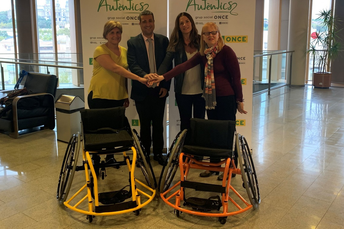 La Fundación ONCE ha donado dos sillas de ruedas a la Fundación Cruyff este 21 de octubre en un acto celebrado en la Delegación Territorial de la ONCE en Catalunya.