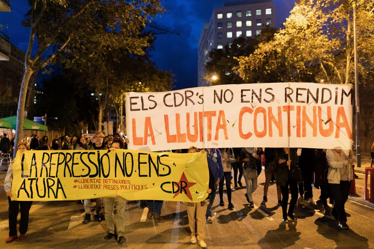 También han gritado 'No es violencia, es autodefensa', y han exhibido una pancarta con el texto: 'Los CDR no nos rendimos. La lucha continúa'.