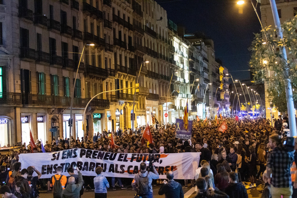 Unos 1.100 manifestantes independentistas, según la Guàrdia Urbana, se han manifestado este viernes por la tarde desde la plaza Universitat de Barcelona contra la "represión", y sobre las 20.30 se han parado ante la Jefatura Superior de Policía Nacional en Via Laietana con gritos como 'Urquinaona lo volveremos a hacer'. Posteriormente se han desplazado hasta plaza Sant Jaume, frente a la sede del Govern, donde han gritado consignas como 'Govern dimisión' y 'Fuera las fuerzas de colaboración'.