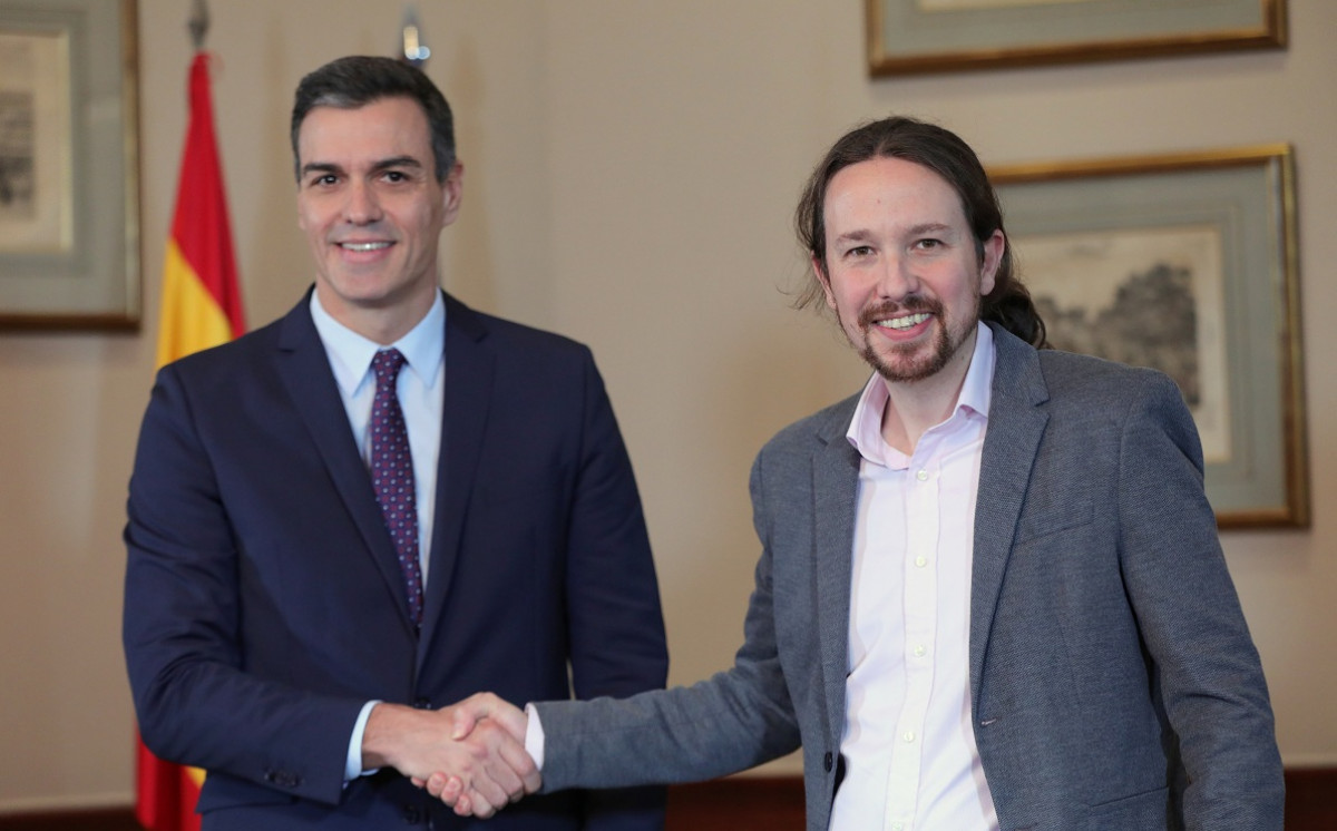 El presidente del Gobierno, el socialista Pedro Sánchez y el secretario general de Podemos, Pablo Iglesias, han firmado este martes el principio de acuerdo para compartir un gobierno de coalición.