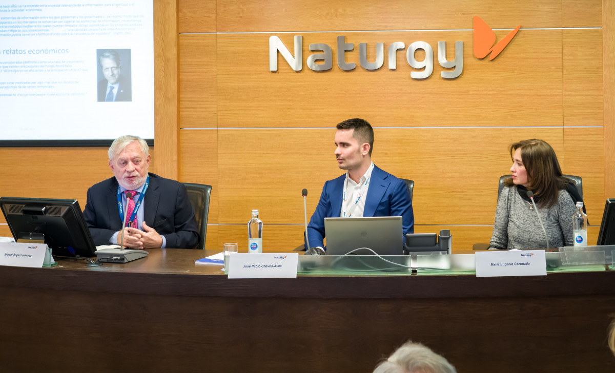De izquierda a derecha, el economista experto en mercados de energía Miguel Ángel Lasheras; el investigador del Instituto de Investigación Tecnológica de la Escuela Técnica Superior de Ingeniería (ICAI)-Universidad Pontificia Comillas, José Pablo Chaves-Ávila; y la directora general de la Fundación Naturgy, María Eugenia Coronado.