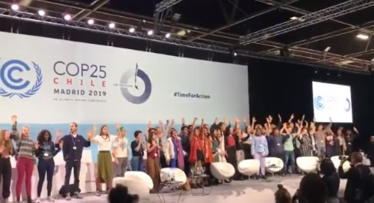 Jóvenes activistas han irrumpido este miércoles en la Cumbre del Clima de la ONU COP25 que se celebra en Madrid. Aseguran que siguen los pasos de Greta Thunberg , forman parte del movimiento 'Viernes por el Futuro' y piden acciones reales para atender la emergencia climática ya.