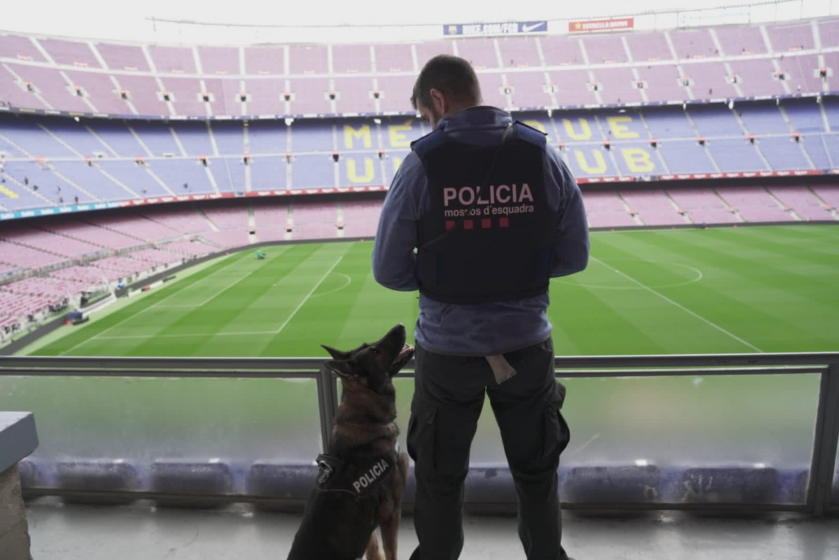 Unos 1.000 mossos d'Esquadra y 2.000 efectivos de seguridad privada del FC Barcelona se desplegarán este miércoles 18 de diciembre para garantizar la seguridad del entorno del Camp Nou y de la celebración del Clásico con el Real Madrid, un partido previsto a las 20 horas, ante la convocatoria de Tsunami Democràtic bajo el lema 'Derechos, libertad, autodeterminación'. A las 9:00 de la mañana, la unidad canina ya se ha puesto a trabajar en el entorno del Camp Nou.