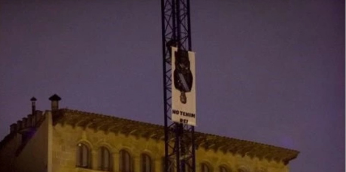 En el cartel, colgado en una grúa, aparecía una foto del Rey Felipe VI boca abajo sobre fondo blanco y se podía leer 'No tenemos rey'.
