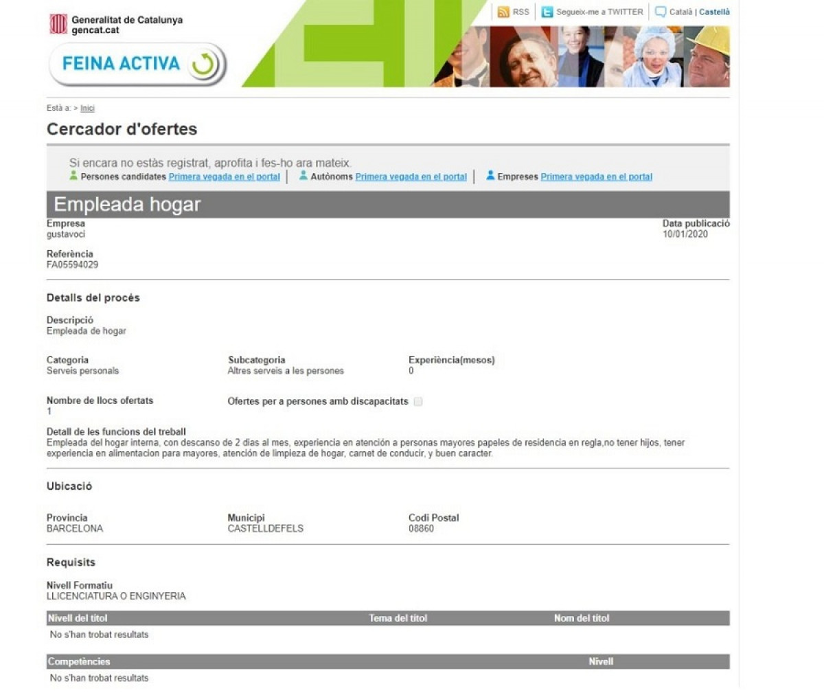 No obstante, la oferta aún estaba en línea la tarde de este viernes y, como mínimo, una persona se ha interesado por ella y se ha inscrito.