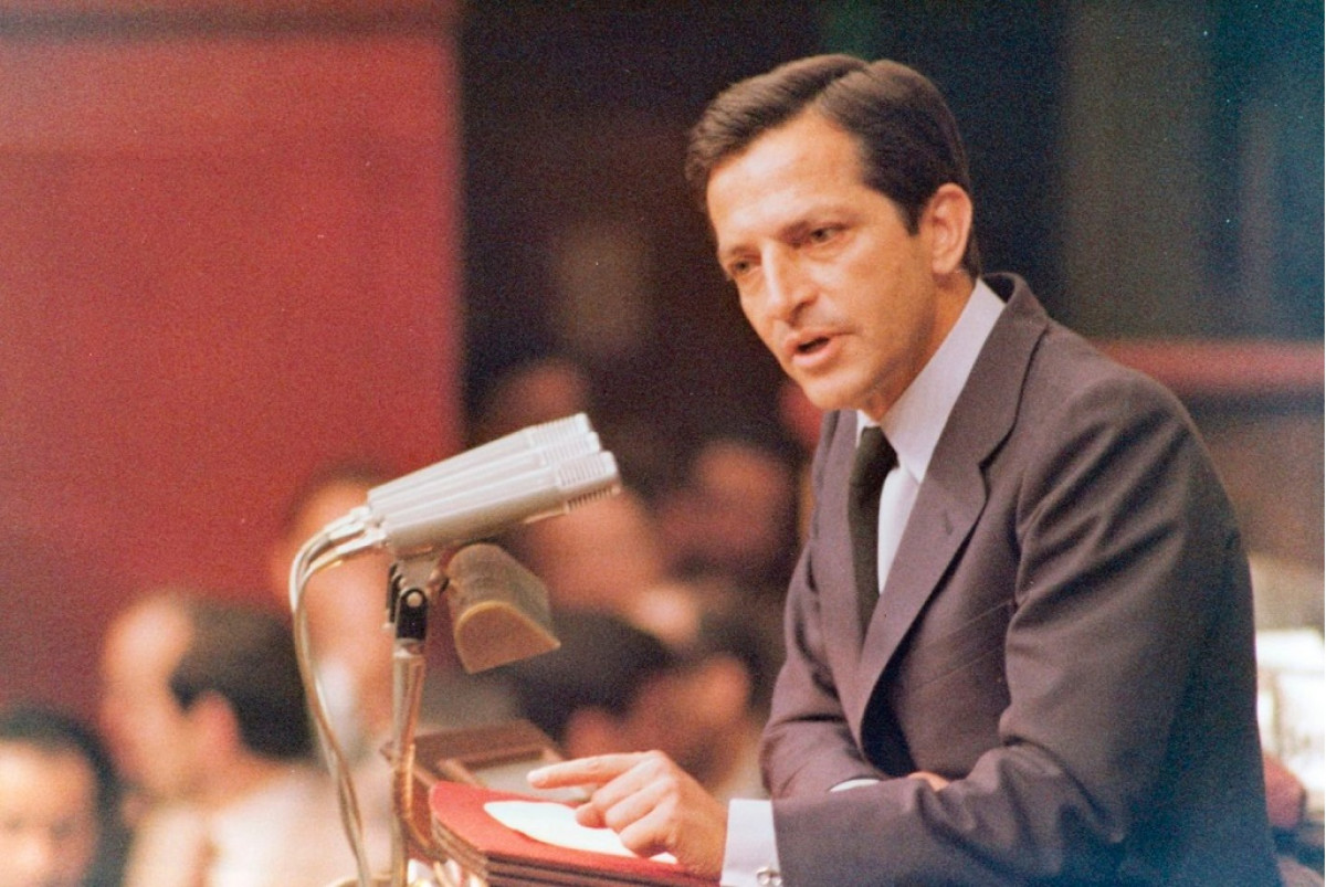 El 6 de julio de 1976, Adolfo Suárez fue elegido presidente del Gobierno de España. En su discurso, emitido por la única televisión que había, TVE, afirmaba que “Pertenezco por convicción y talante a una mayoría de ciudadanos que desea hablar un lenguaje moderado, de concordia y conciliación”. El padre del centro ideológico o político español fue una figura clave en la transición española.