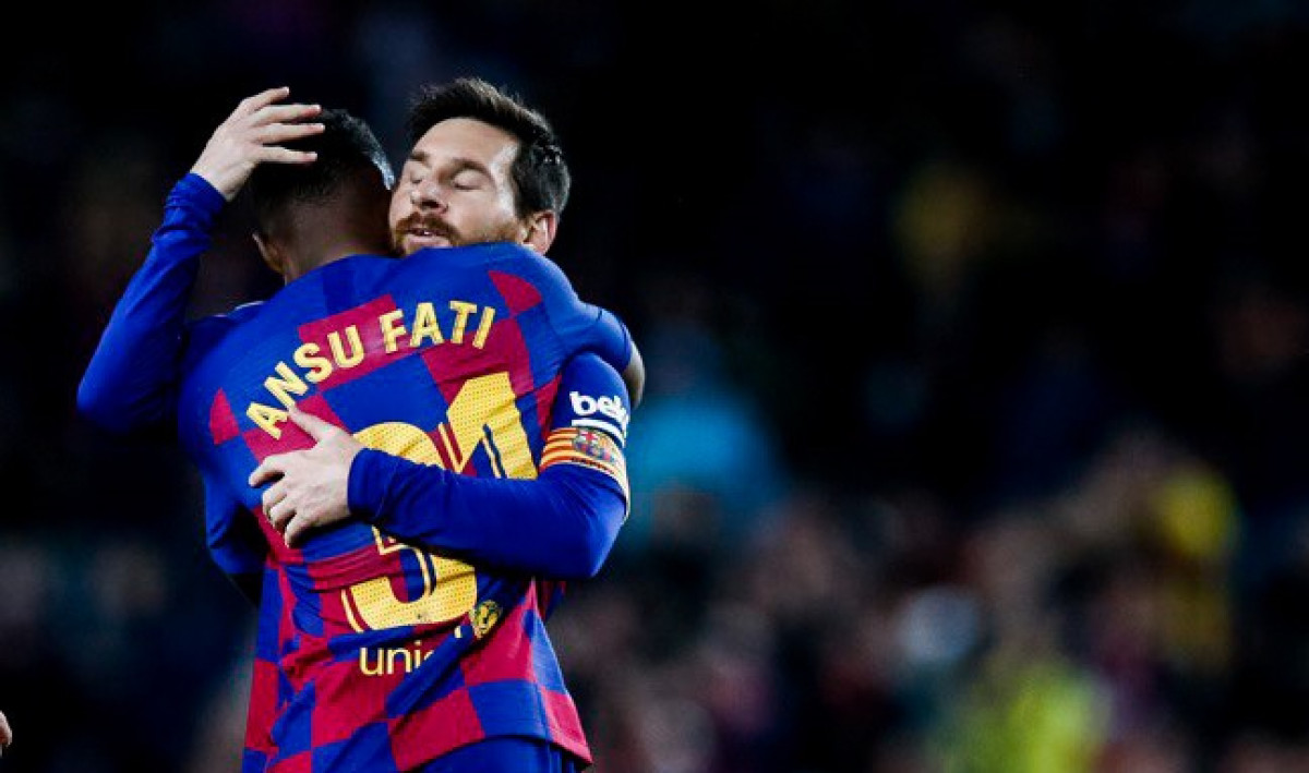 Leonel Messi abraza a Ansu Fati / @FCBarcelona_es