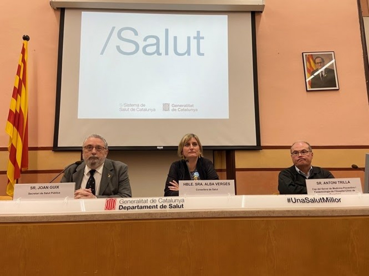 La consellera de Salud de la Generalitat, Alba Vergés; el secretario de Salud Pública, Joan Guix, y el responsable de Medicina Preventiva y Epidemiología del Hospital Clínic de Barcelona, Antoni Trilla, han reivindicado este viernes el trabajo coordinado entre los diferentes agentes que integran la red de salud pública y han argumentado que, si bien no pueden garantizar que llegue alguien infectado, si pueden asegurar que "la respuesta será rápida y efectiva".