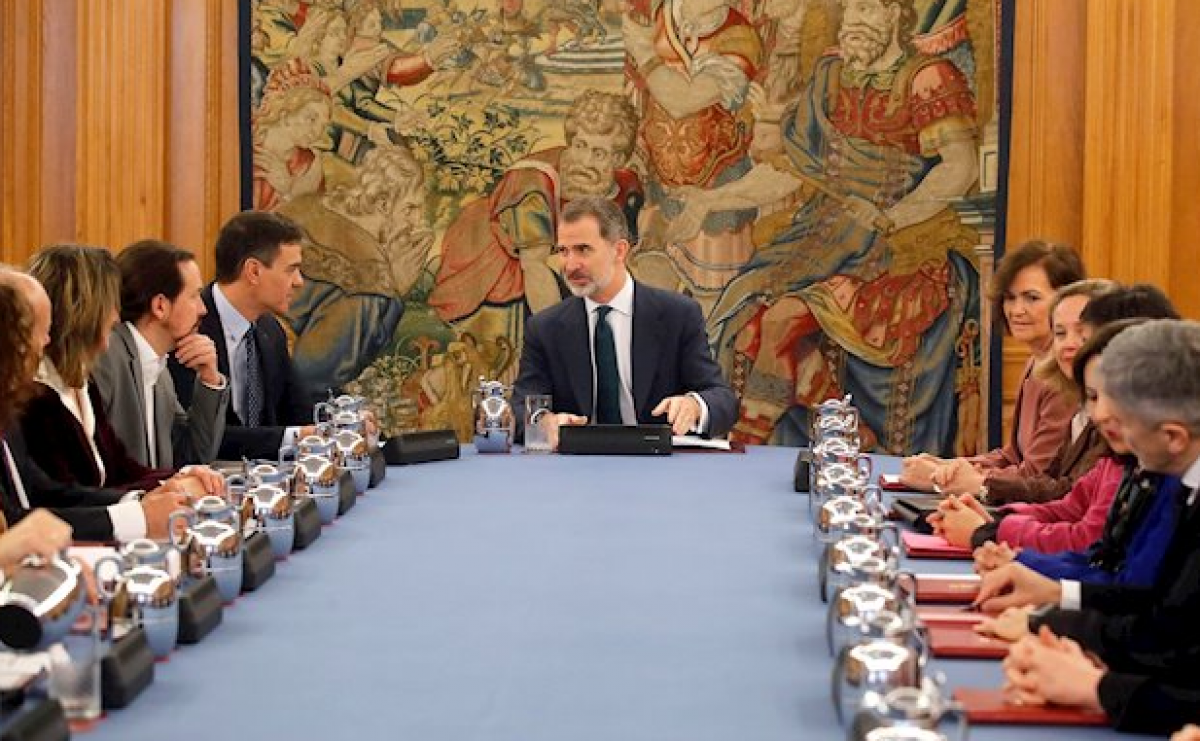 El Consejo de Ministros que preside el Rey tiene carácter deliberante, después el Ejecutivo celebra una segunda reunión con carácter decisorio en el Palacio de la Moncloa.