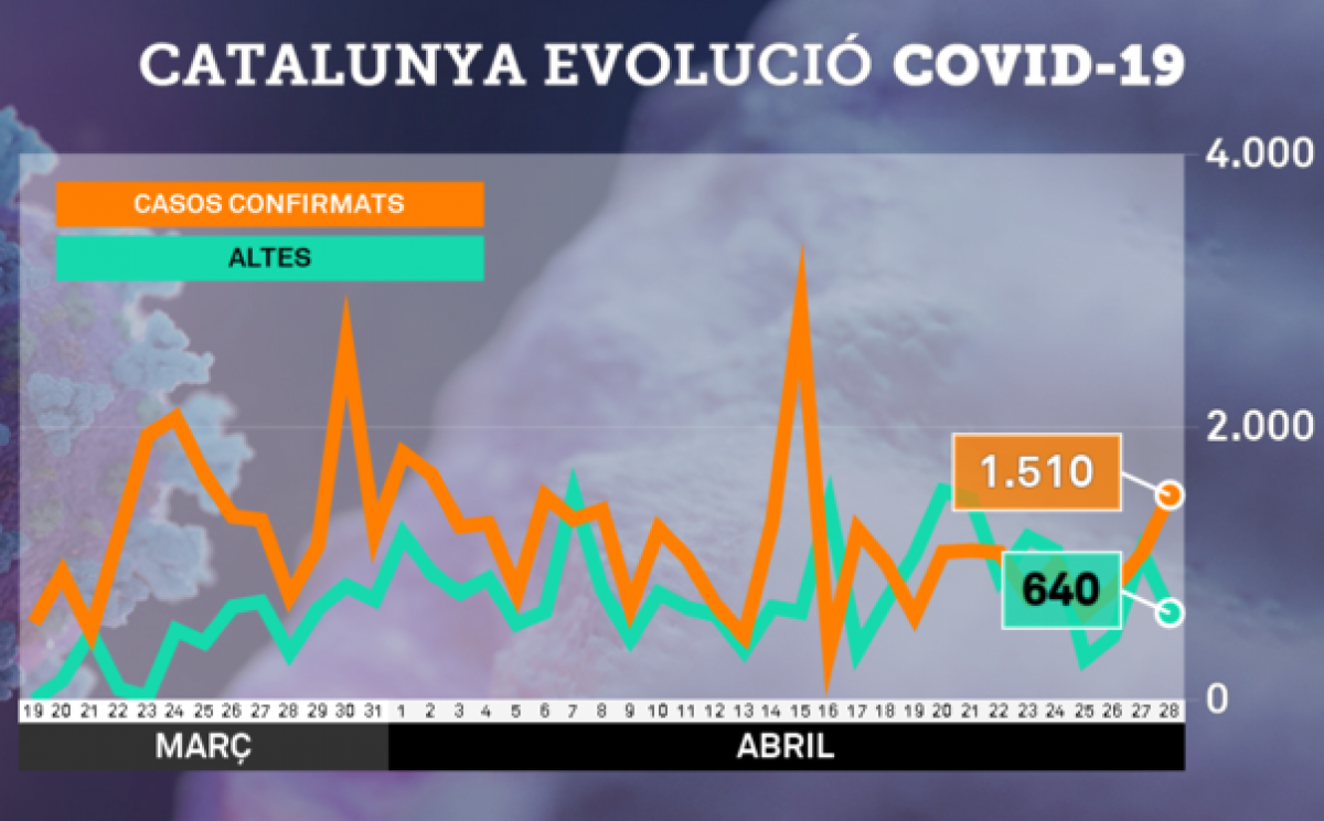 El recuento de las funerarias, que va a un ritmo diferente del de los hospitales, se incluye en la información que proporciona la Consellería de Salud desde el 15 de abril. Según los datos del departamento, en Catalunya ha habido en las últimas 24 horas 1.510 nuevos positivos confirmados de la Covid-19. Se trata de la jornada con más casos nuevos confirmados de los últimos 12 días.