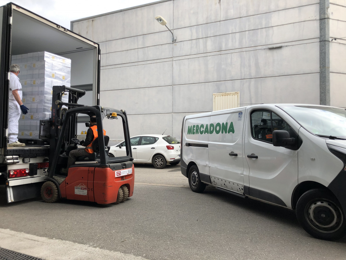 Mercadona ha entregado este martes 99.200 unidades de longaniza, chorizo y pollo (5 toneladas) al Banc dels Aliments en toda Girona para paliar la crisis del coronavirus.