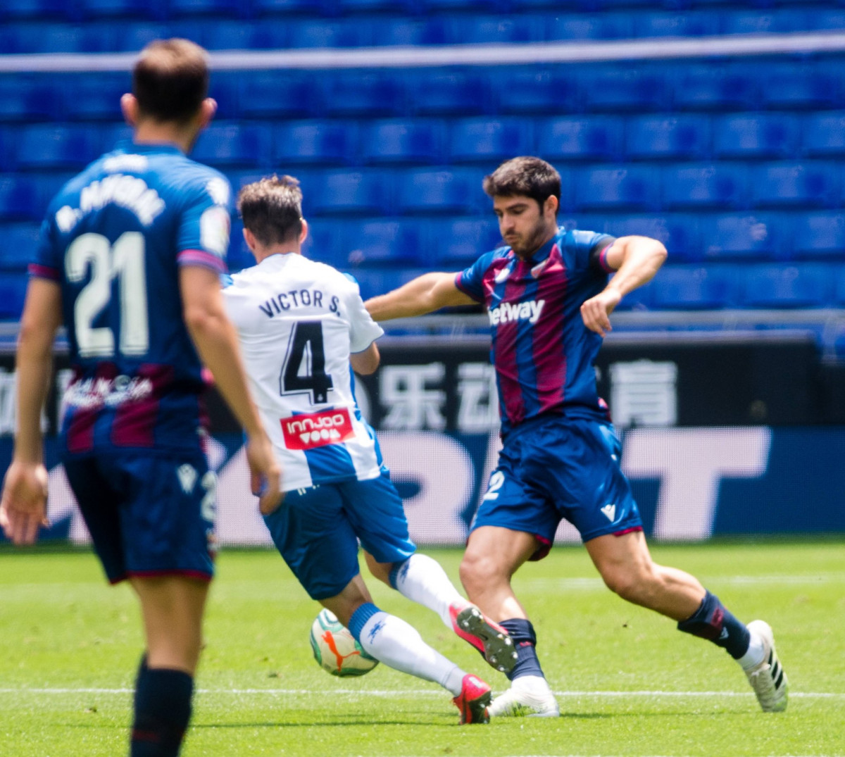 Desde el primer minuto del partido se ha evidenciado que los españolistas no tenían su día. El Levante se ha hecho con el control del juego y antes del primer cuarto de hora ya se ha adelantado en el marcador gracias a un tanto de Mayoral. Los valencianos hubieran podido hacerlo antes, pero Diego López ha salvado los muebles ante Bardhi.