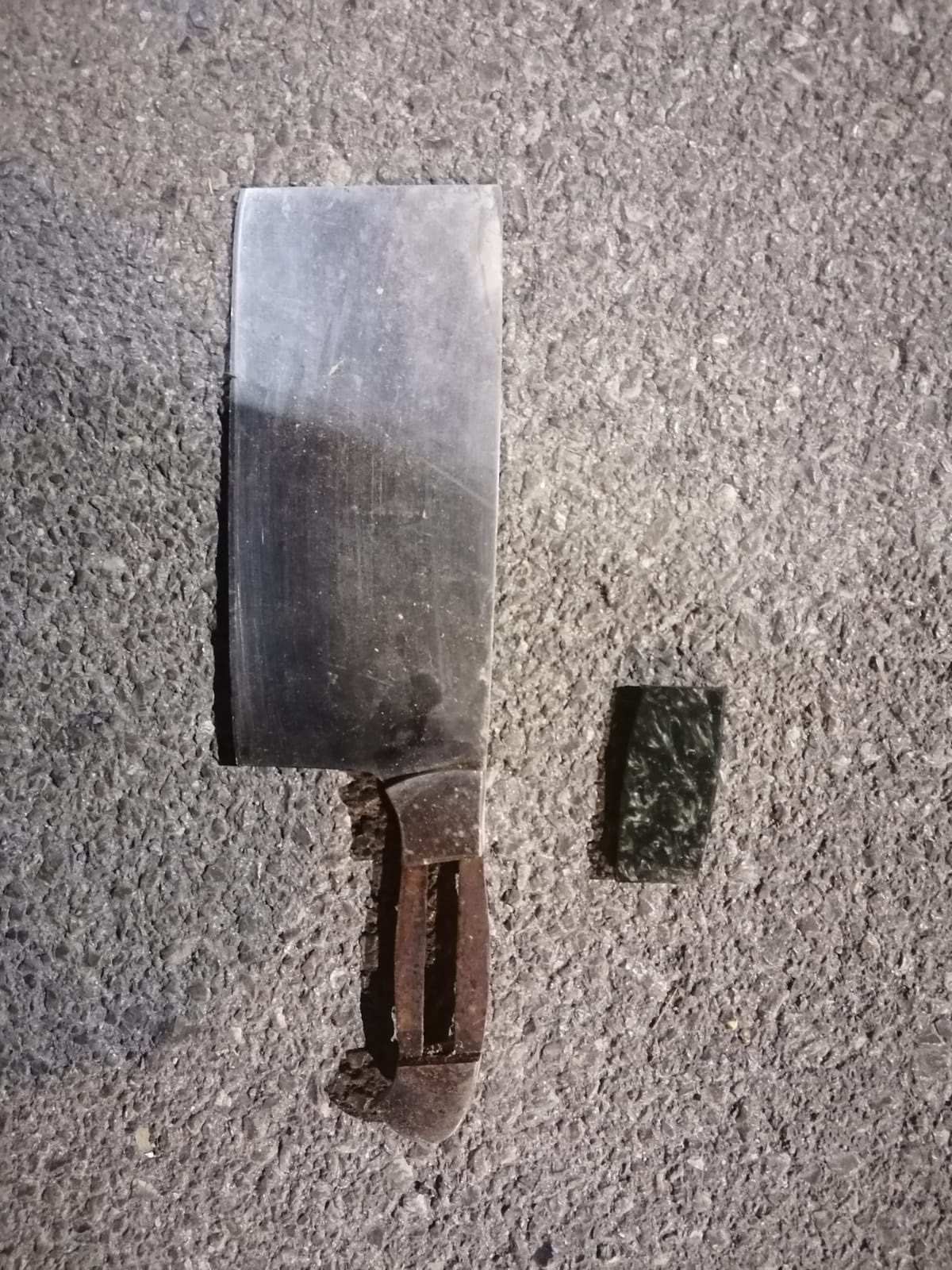 Al indicar el agredido que había sido atacado con un hacha, preguntan por esta al presunto agresor, manifestando que la ha arrojado por la ventana hacia las vías ferroviarias, localizando los agentes el arma, así como cierta cantidad de botellas de cerveza.
