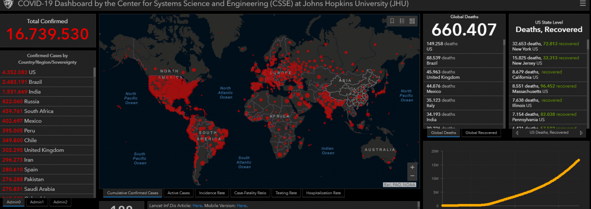 El repunte es evidente en la evaluación de la Universidad John Hopkins. Se tardaron 38 días en llegar de los cinco millones de casos a los diez millones, pero solo 24 días en pasar de diez a quince millones. Las cifras actuales son: 16,5 millones diagnosticados, 9,6 millones recuperados y 654.000 muertos.