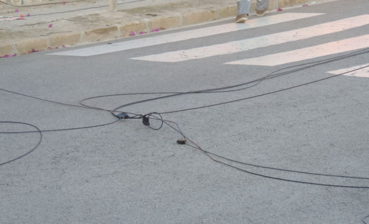 Este domingo bien temprano, las 8 de la mañana, un camión de la empresa CiC3 que transportaba maquinaria para la construcción a su paso por la Avenida Central de Albarrosa, en su tramo inicial, se ha llevado por delante todo el cableado aéreo de varios postes de la calle.