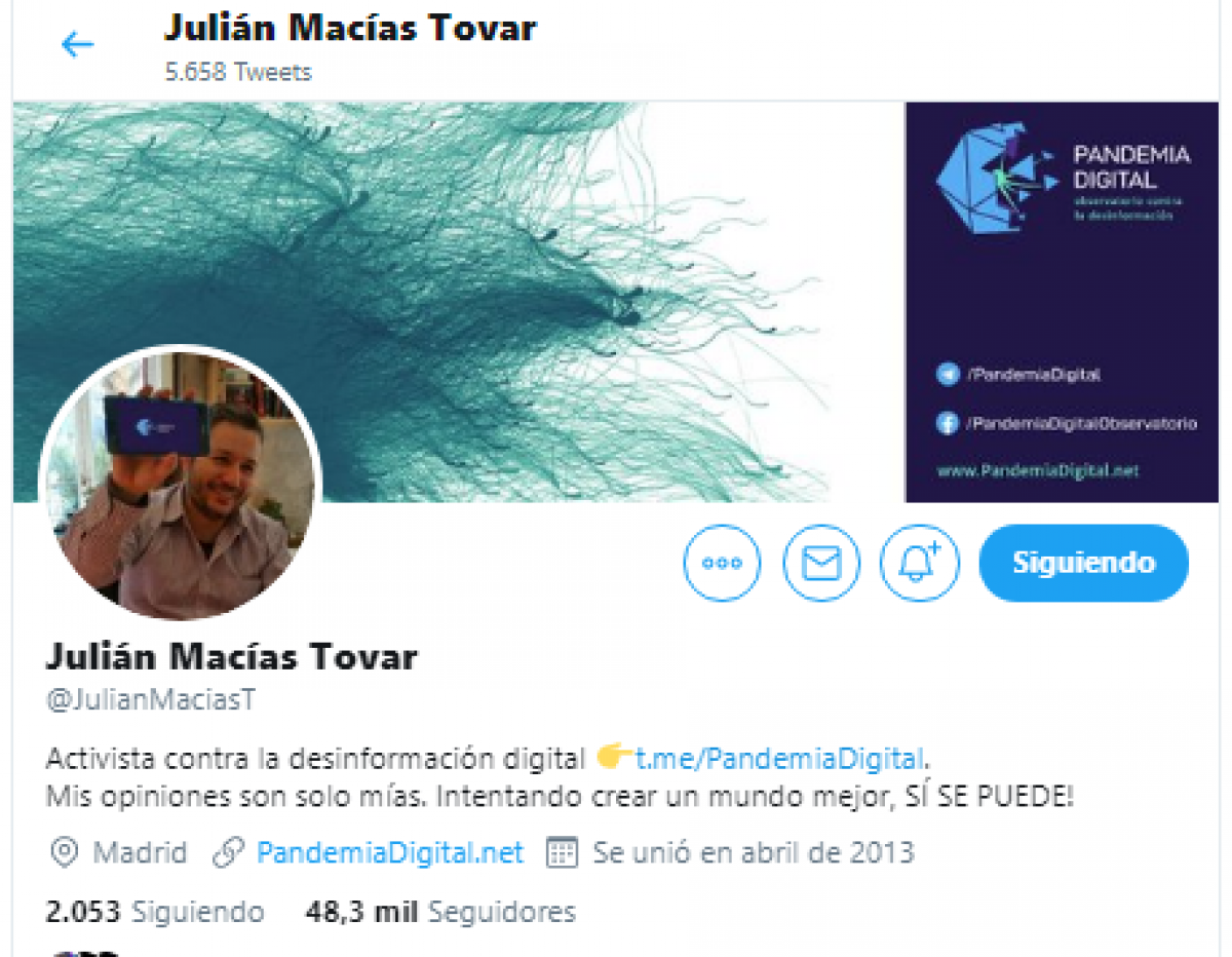 Julián Macías natural de Cáceres y nacido en 1977 es el responsable de redes sociales de Podemos como se afirmaba en una entrevista en Cuarto Poder en abril de este 2020. En ella se afirmaba que "Macías, desde su cuenta personal de Twitter, lanza hilos explicativos sobre el comportamiento de bots y determinadas cuentas en la red social, en un momento en que los bots se han convertido en una herramienta política de primer grado para la difusión de bulos y para generar estados de ánimo en grandes sectores de la opinión pública"