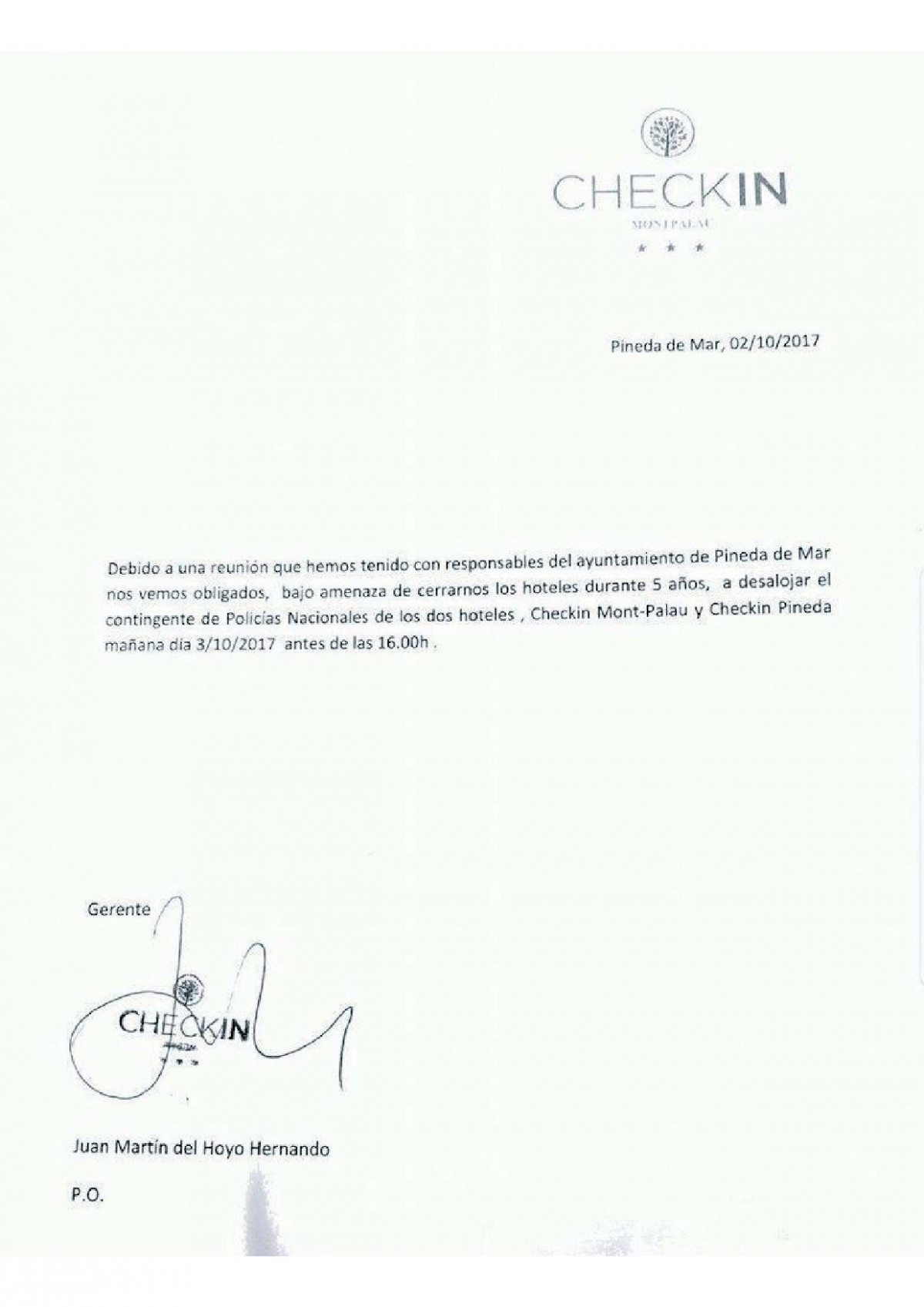 El escrito de acusación, firmado por el Servicio de Odio y Discriminación de la Fiscalía de Barcelona, recoge que la noche del 2 de octubre los tres acusados supuestamente entraron al hotel, pidieron ver al director y uno de ellos le dijo que "si no echaba a los policías le iba a cerrar el hotel al día siguiente durante cinco años".