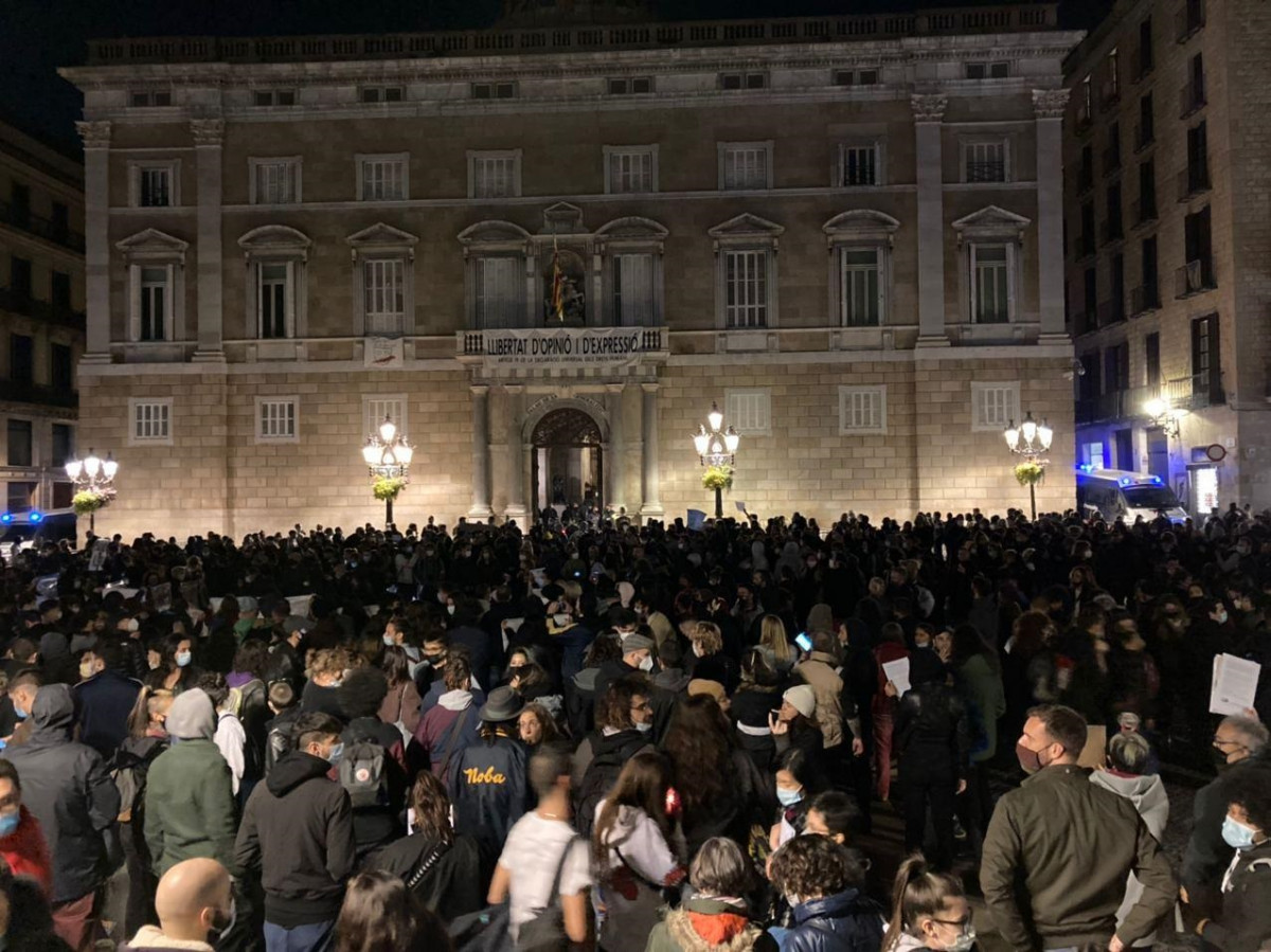 Unas 800 personas, según la Guardia Urbana, se han concentrado este lunes por la noche en la plaza Sant Jaume de Barcelona para protestar contra el toque de queda impuesto en Catalunya para frenar los contagios de Covid-19.