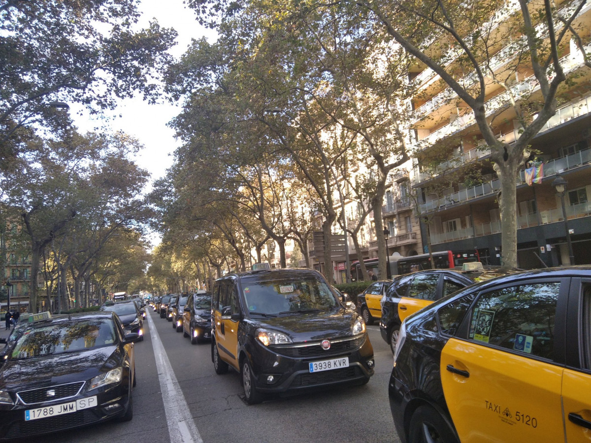 Los taxistas colapsan el centro de Barcelona y amenazan con acampar en la calle pese al toque de queda