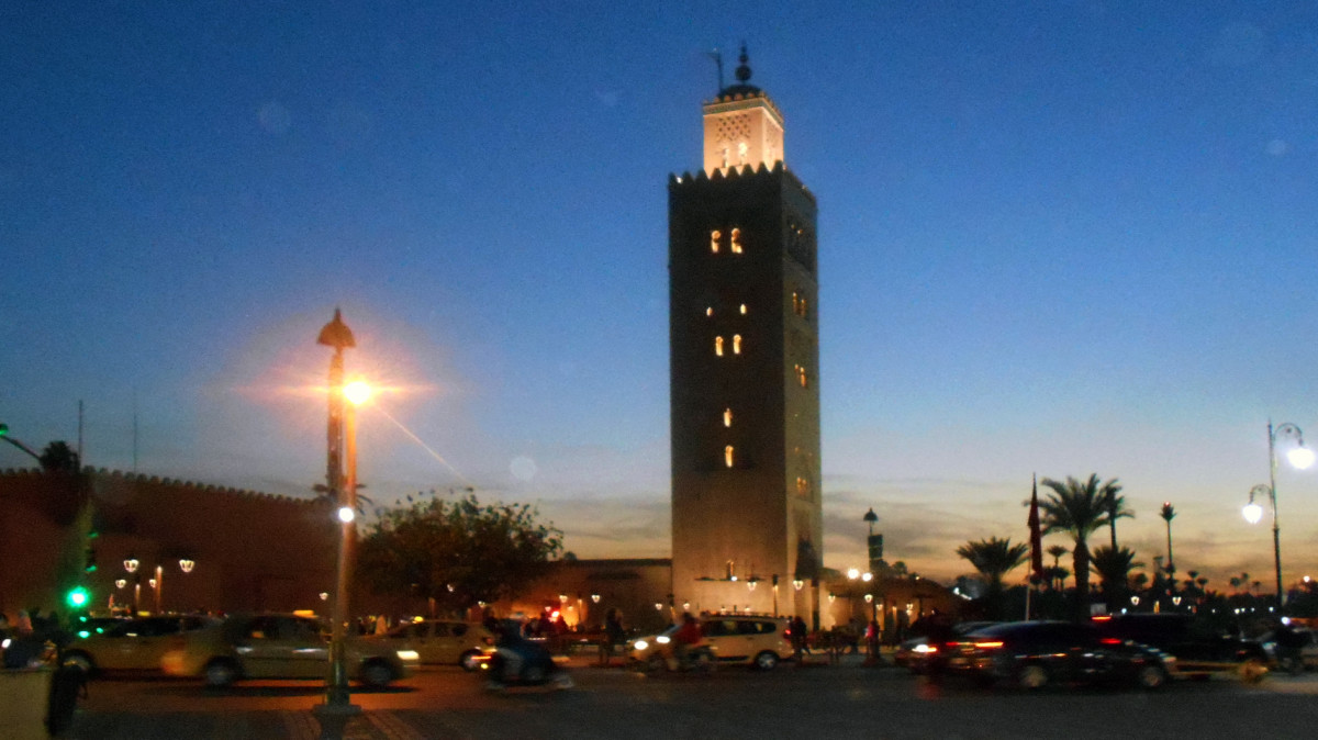 Por las tardes recorría de punta a punta la ciudad, sus avenidas y callejuelas, sus palacios y jardines, su muralla de ladrillo rojizo con sus diez puertas, su zoco… Nada descubro al que estuvo en Marrakech y estoy convencido de que coincidiríamos en destacar la mezquita, Kutubía, la más grande y visible desde toda la ciudad, con su minarete de casi setenta metros, coronado por una aguja de cuatro orbes y un par de franjas de cerámica que adornan cabeza y cuello, y que contrastan con su rojiza torre. En mi opinión, visitarla sobre las siete de la tarde, cuando el muecín llama a rezar el Isha y el sol se esconde tras ella, procura una experiencia tan agradable que difícilmente se olvida.