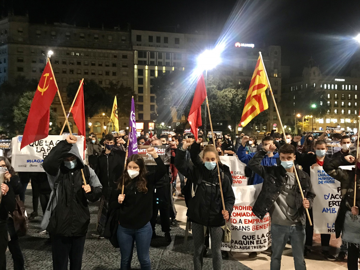Unas 100 personas se han manifestado este miércoles por la tarde en la plaza Catalunya de Barcelona para reivindicar más medidas urgentes de carácter social para hacer frente a la crisis derivada de la pandemia de coronavirus.