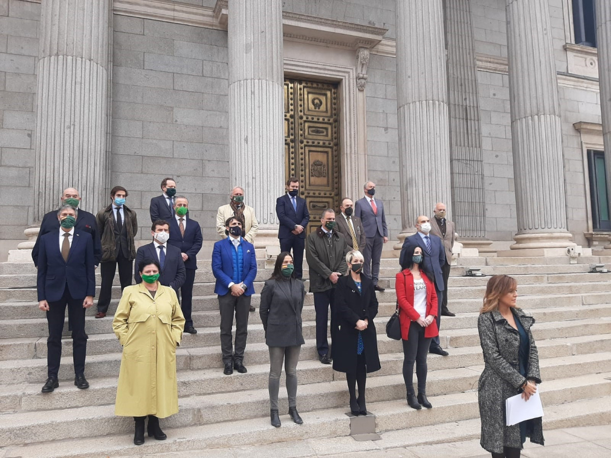 Así, a las 11.15 horas, 45 minutos antes de la convocatoria oficial, diversos diputados de Vox se han concentrado en la conocida como Puerta de los Leones de la Cámara Baja para leer un manifiesto.