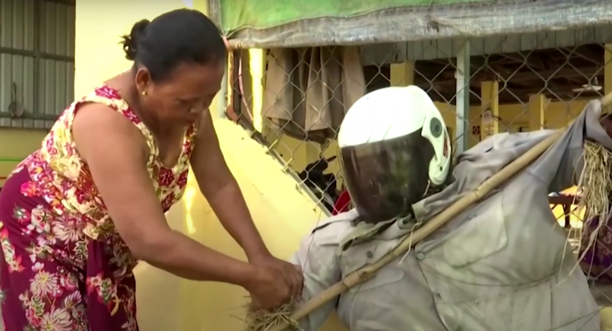 “Desde que hice estos Ting Mongs, ayudaron a ahuyentar cualquier virus, incluido el coronavirus, y evitar que se propague a mi familia”, dijo Ek Chan, que tiene un espantapájaros macho y una hembra.