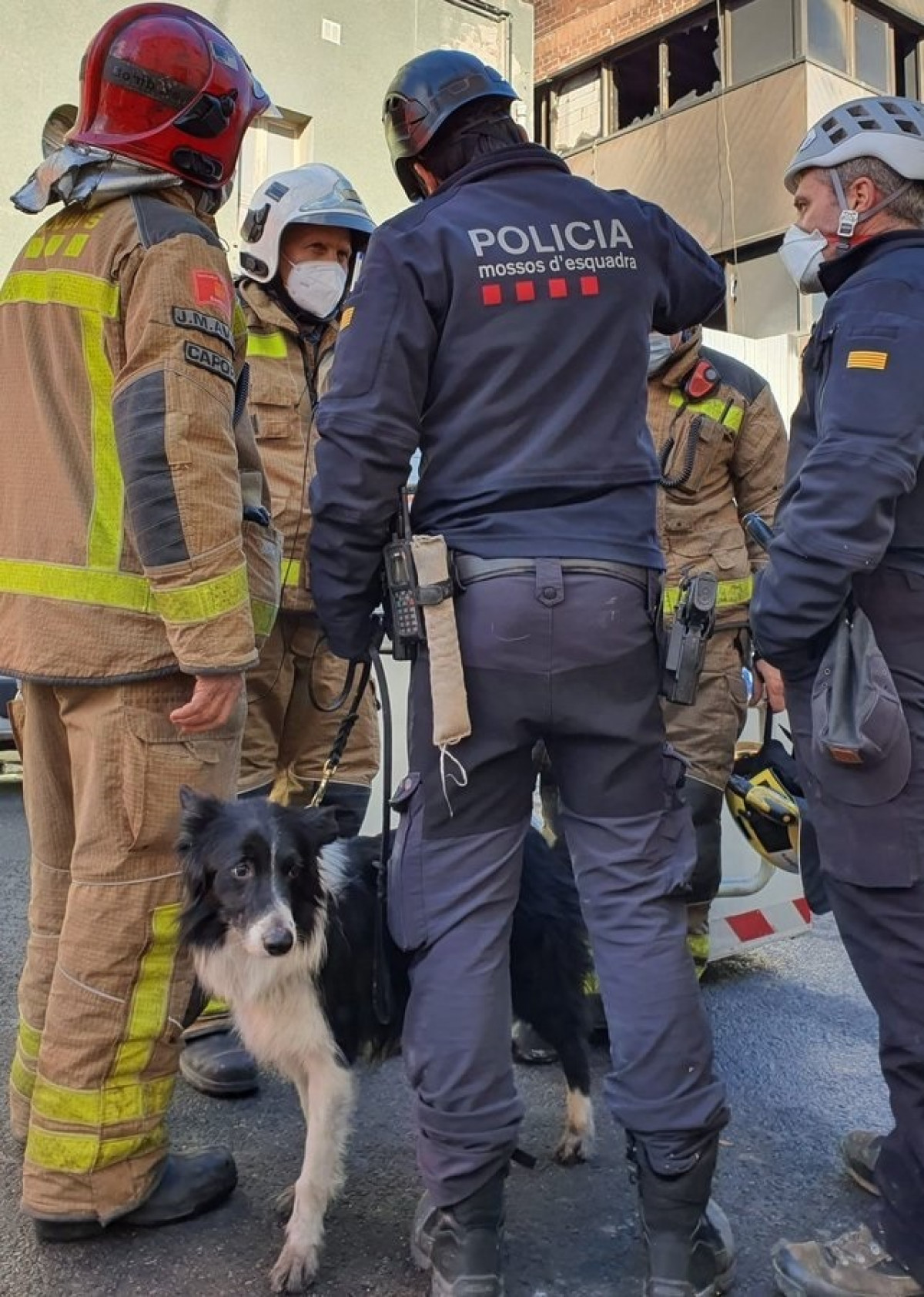 Los Mossos están utilizando un perro para rastrear personas que puedan haber quedado atrapadas en la nave de Badalona