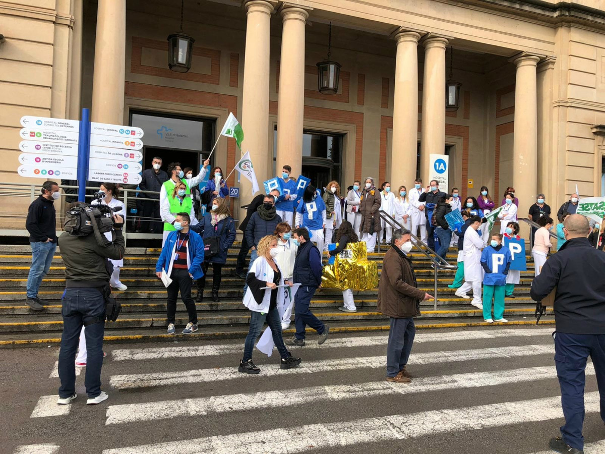 Unos 300 empleados del Hospital Vall d'Hebron se manifiestan para mejorar la accesibilidad del hospital