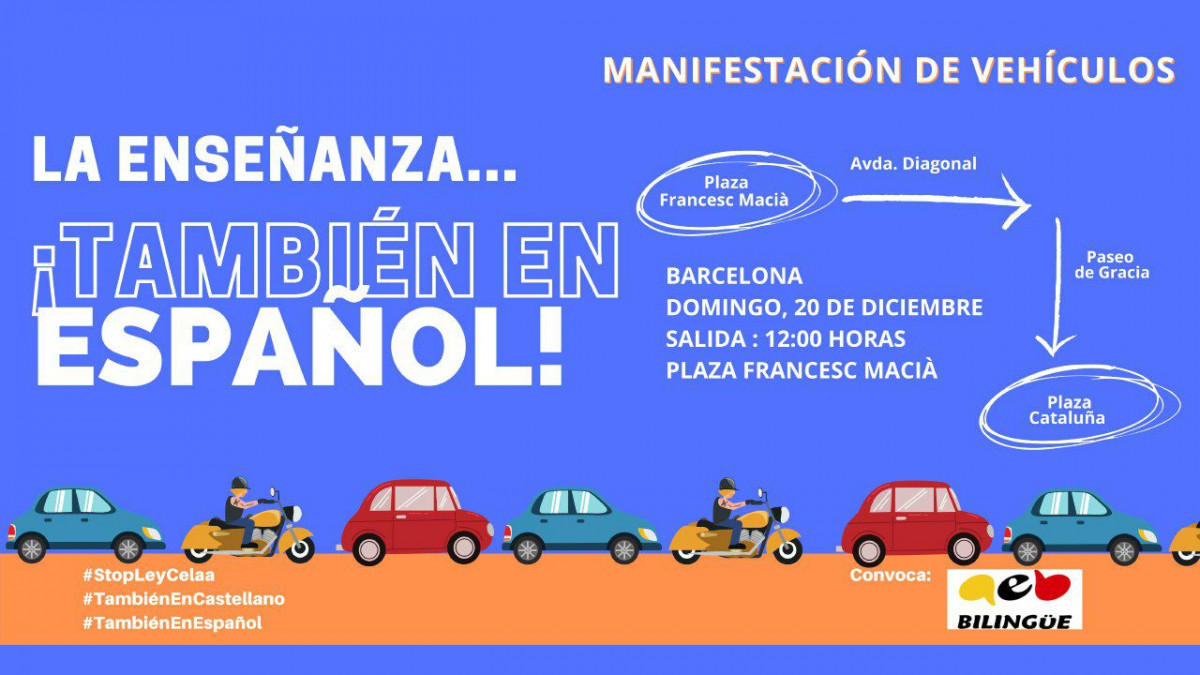 Societat Civil Catalana (SCC) ha hecho un llamamiento para que los ciudadanos acudan este domingo a una manifestación convocada por la Asamblea por una Escuela Bilingüe de Cataluña (AEB) para pedir que el castellano siga siendo lengua vehicular en todo el territorio español.