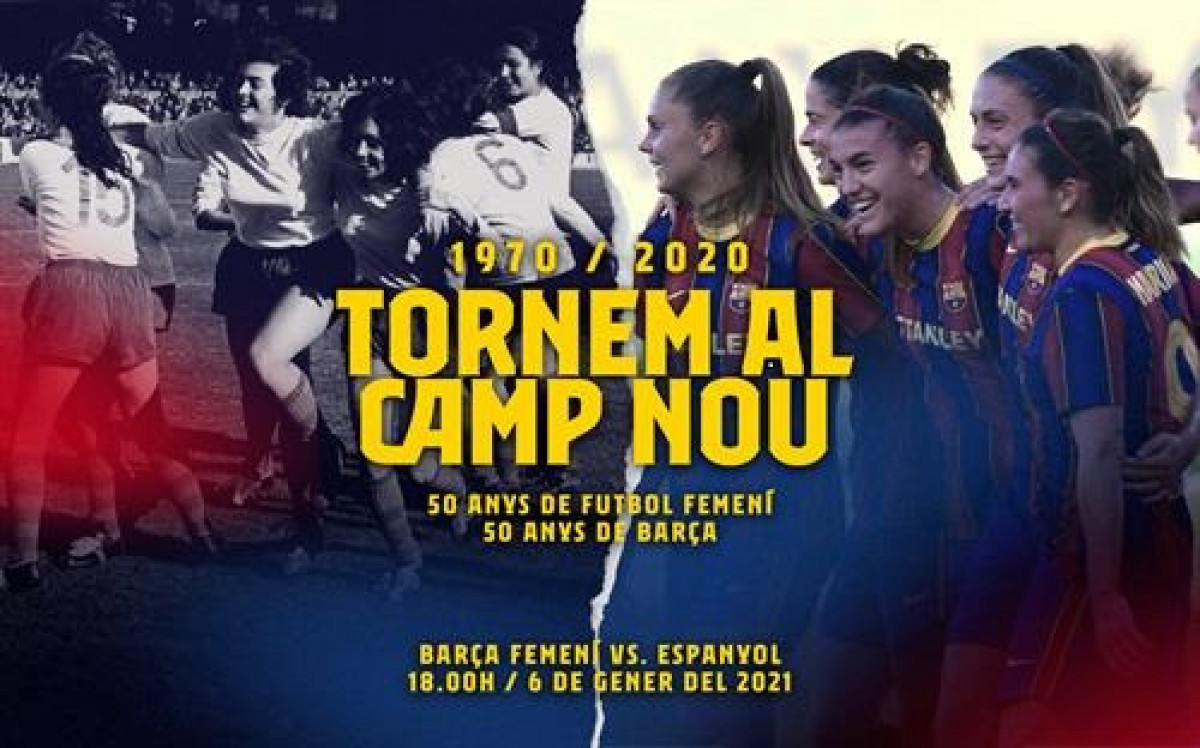 El equipo femenino del Barça jugará por vez primera en el Camp Nou el 6 de enero medio siglo más tarde de que lo hicieran sus pioneras: la Selecció Ciutat de Barcelona, embrión de la exitosa actual sección blaugrana. El rival será nada menos que el RCD Espanyol en encuentro oficial correspondiente al torneo liguero.