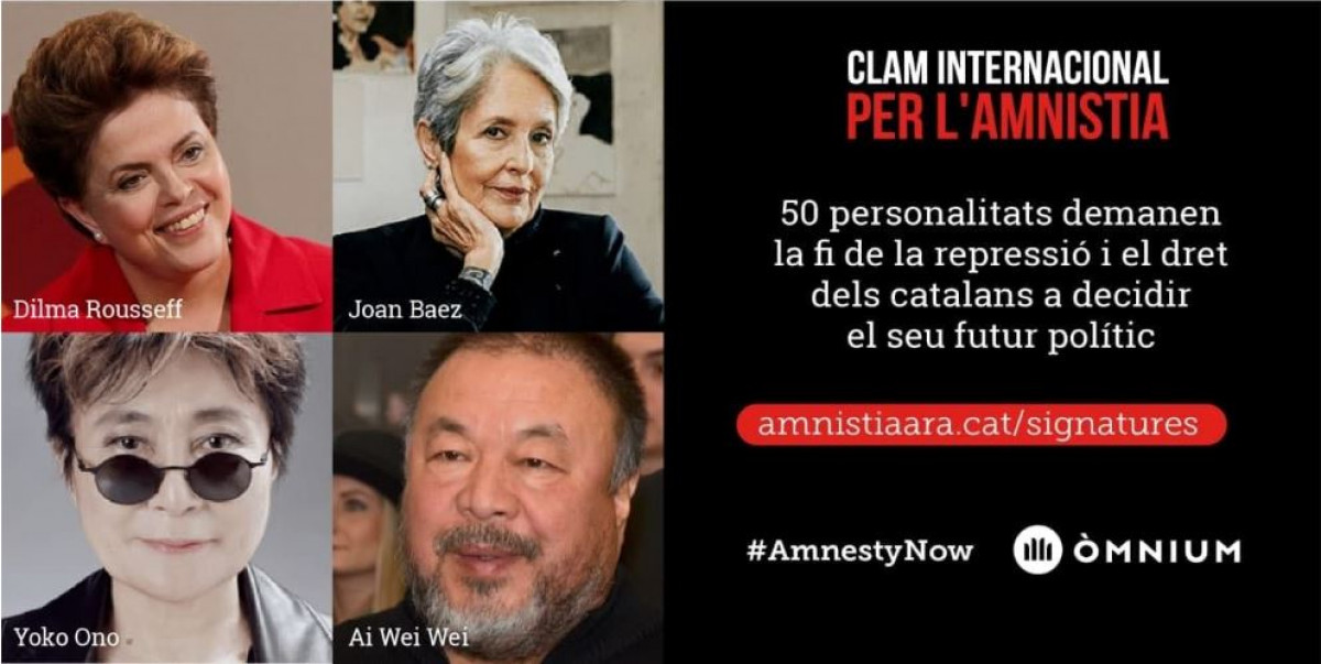 Entre los firmantes están la expresidenta de Brasil Dilma Roussef, el político irlandés e impulsor del proceso de paz en Irlanda del Norte Gerry Adams, la artista Yoko Ono y el escritor Irvin Welsh, informa la entidad en un comunicado.