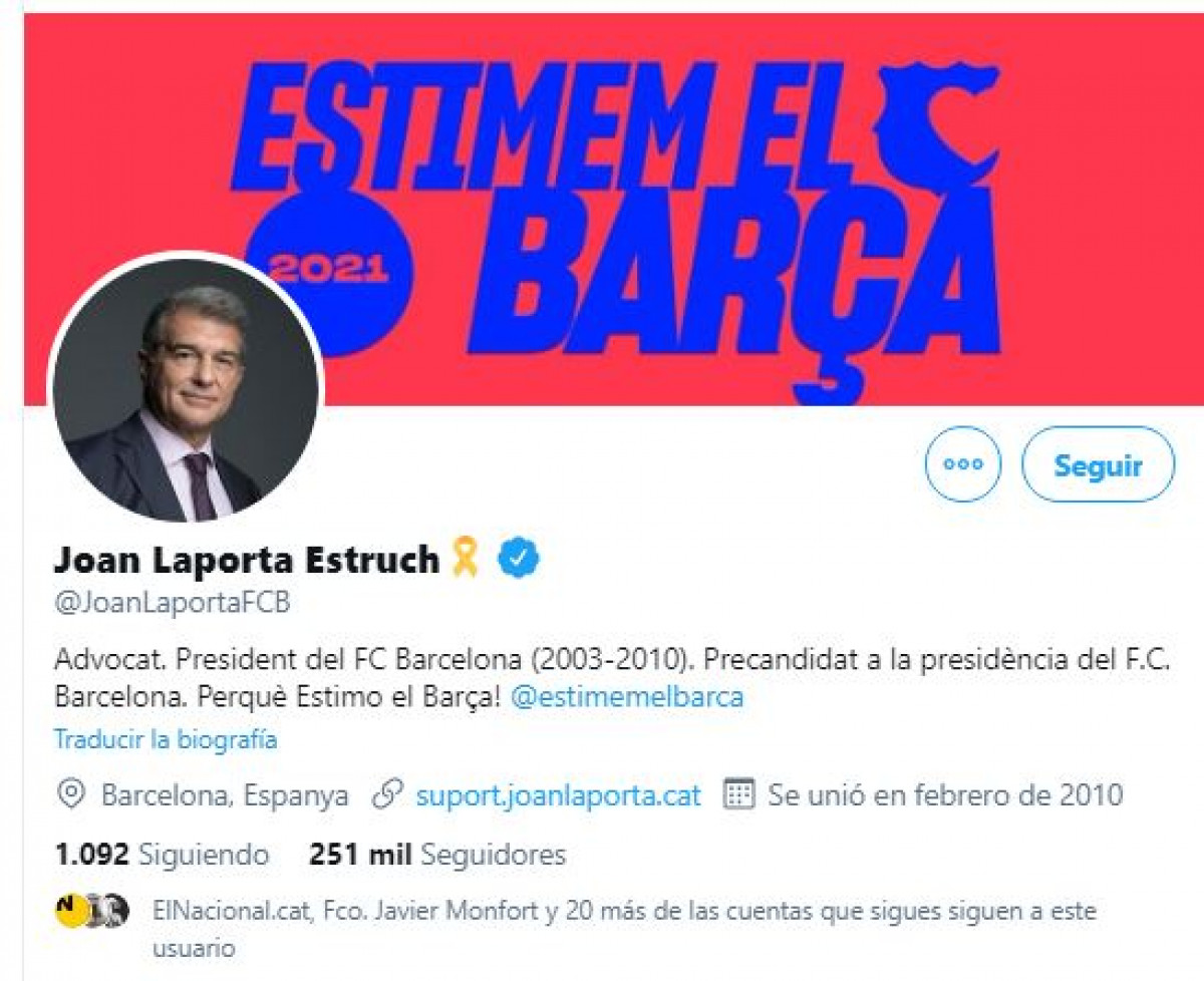 Laporta cuenta con más de 243.000 seguidores en Facebook y supera los 87.000 en Twitter, dos de las redes sociales más utilizadas. El perfil de Laporta Facebook fue creado en 2010 y es gestionado por hasta ocho administradores diferentes, según declara el perfil del ex presidente blaugrana.