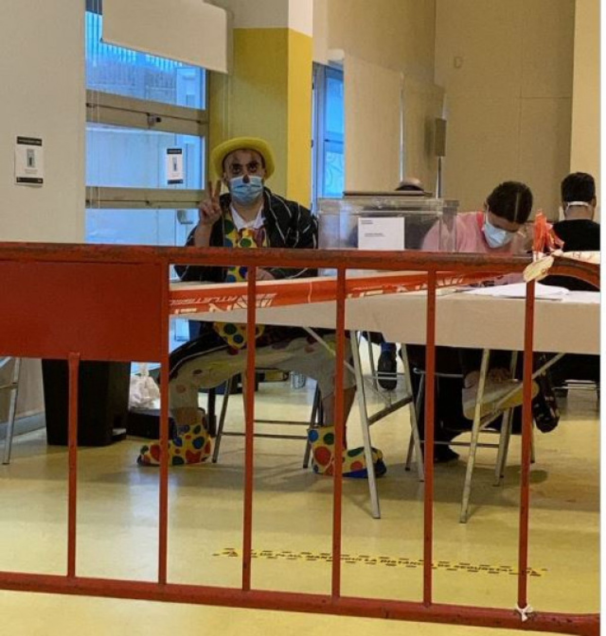 Y es que esta persona ha sido elegida como Presidente de mesa electoral y ha decidido ir vestido de payaso.