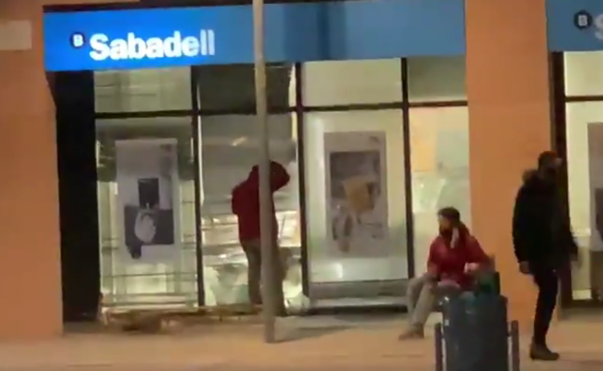 Manifestantes de la protesta de Girona por el encarcelamiento del rapero Pablo Hasel han roto este viernes por la noche los cristales del Banco de Sabadell en la plaza Josep Pla. Hay otras entidades bancarias afectadas en el municipio.