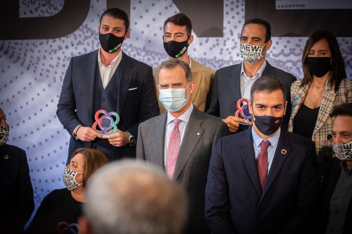 El Rey Felipe VI (c); y el presidente del Gobierno, Pedro Sánchez (d), durante el acto entrega de premios de la Barcelona New Economy Week (BNEW), en Barcelona