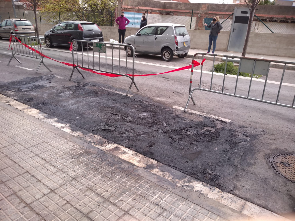 En Viladecans el vandalismo se ha llevado por delante varios coches en la calle Pallars. Además de la destrucción de estos vehículos se ha visto afectado por el incendio el pavimento del suelo de esta zona.