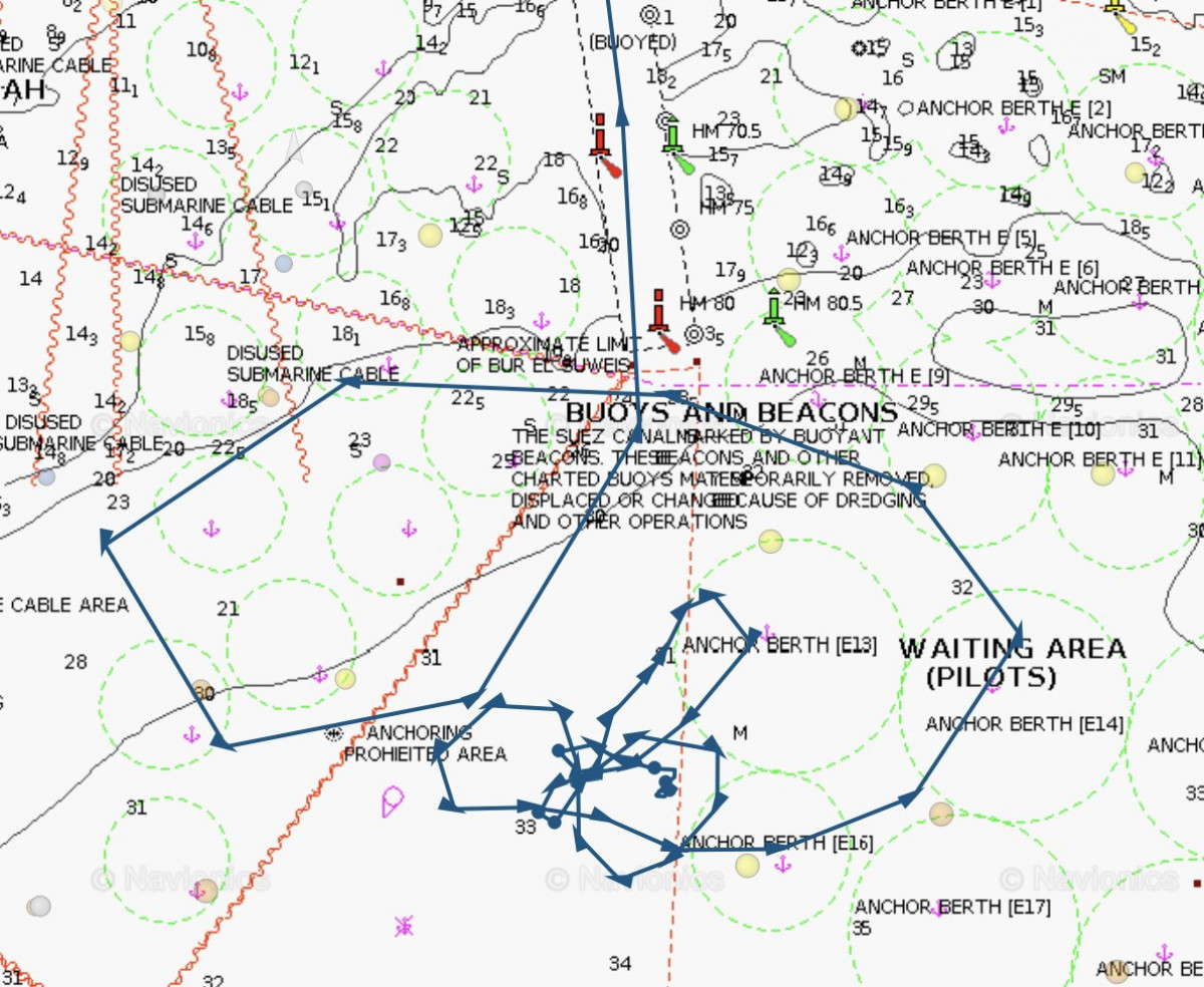 El buque, antes de quedarse encallado, siguió una trayectoria que, como mínimo, se puede calificar de curiosa: dibujó un pene. "La infalible puntería de la mala suerte acompañó al Ever Given desde que partió del fondeadero asignado y se adentró en el Canal", ha explicado Scott-Railon.