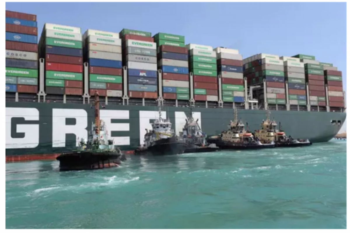 Buque de mercancías "Ever Given" atascado en el Canal de Suez desde el martes 23 de marzo, cortando el tráfico marítimo de cientos de barcos.