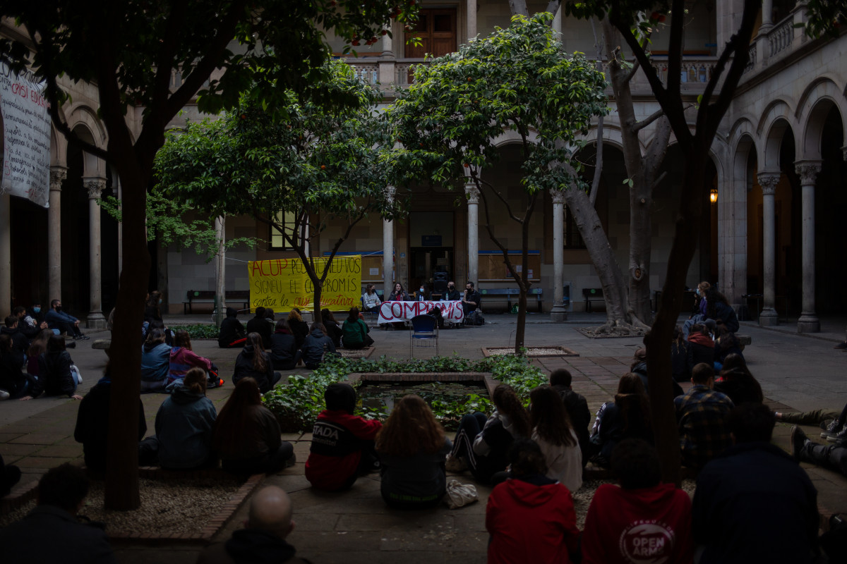 Los estudiantes que el martes por la mañana ocuparon el edificio histórico de la Universitat de Barcelona (UB) se reúnen este jueves con los rectores de las universidades públicas, a los que volverán a pedir que firmen el 'Compromiso contra la crisis educativa' lanzado por el movimiento estudiantil.