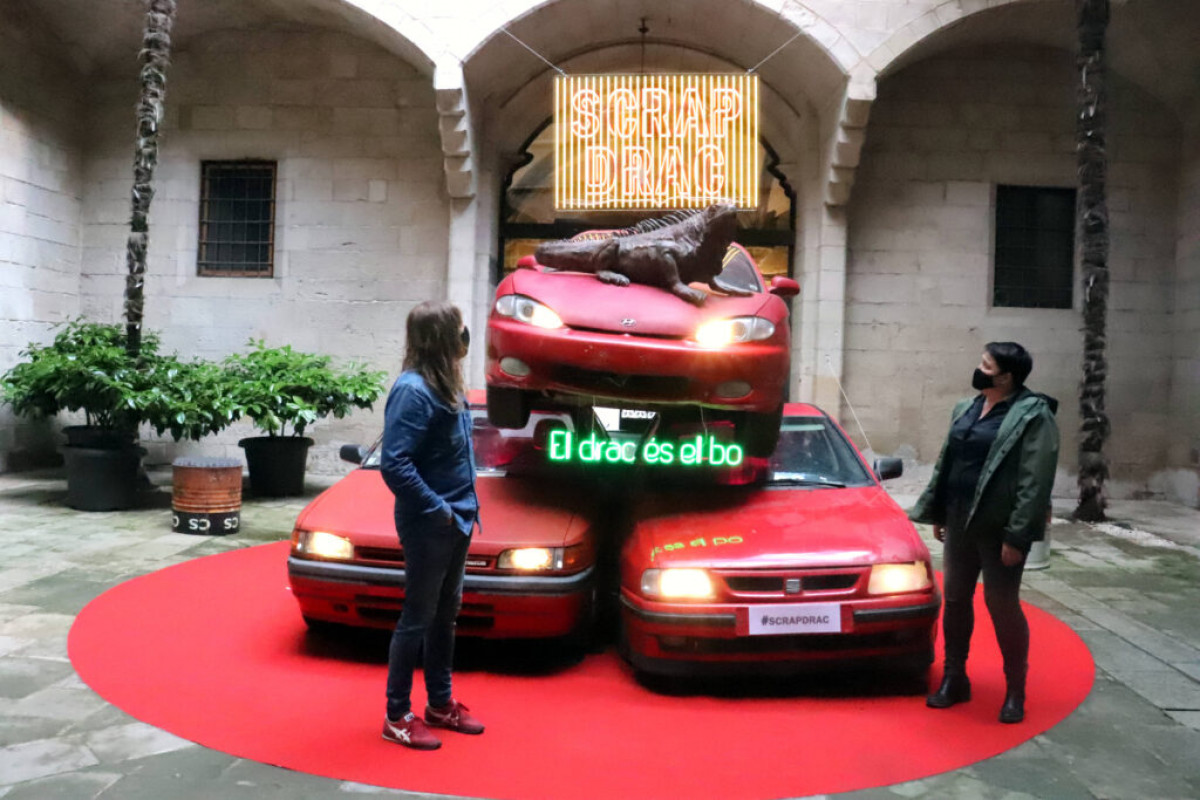 Scrap drac es un montaje con tres coches de chatarra, sobre los que está el dragón representado por una iguana y con unas letras de neón que definen al animal mitológico "como el bueno de la historia" que cuenta también con elementos de desecho que, al mismo tiempo, no dejan de ser iconos de una sociedad materialista, ha informado la Diputación, este martes, en un comunicado.