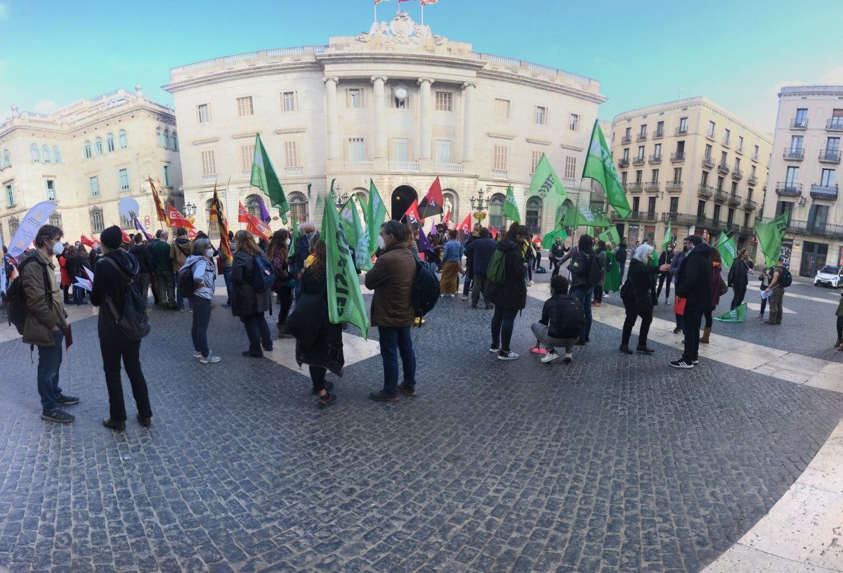 Unas 200 personas según la Guàrdia Urbana se han concentrado este jueves por la tarde en la plaza Sant Jaume de Barcelona, convocadas por sindicatos educativos, para pedir la "reversión de los recortes".