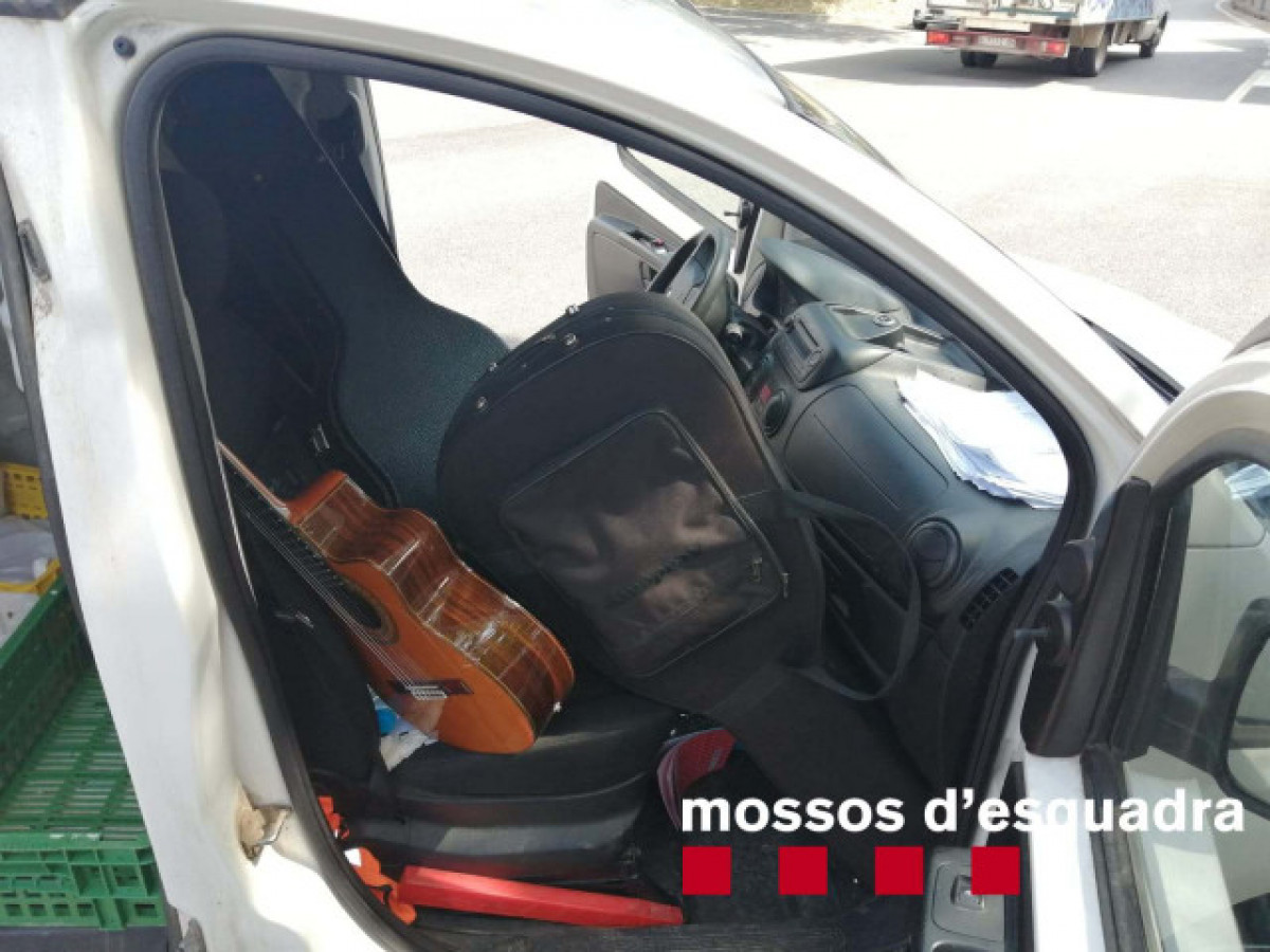 En el momento del registro, dentro del vehículo los mossos encontraron tres guitarras que no eran del ladrón. Además, se le encontró en un bolsillo un afinador de guitarra. Los agentes comprobaron que las guitarras y el afinador habían sido robadas de un piso esa misma noche. Alrededor de las 5 de la madrugada el presunto autor entró en un piso mientras su propietario dormía y cuando la víctima se despertó le exigió dinero. El ladrón cogió el dinero y se fue del piso.