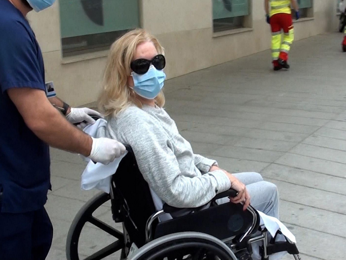 Visiblemente desmejorada, muy débil y en silla de ruedas, la actriz abandonaba el hospital con un ramo de flores en el regazo ocultando su mirada cansada tras unas grandes gafas de sol negras, y se reencontraba con su hija, Sofía Cristo, que muy emocionada se abrazaba a su madre tras semanas de incertidumbre y preocupación por su delicado estado de salud.