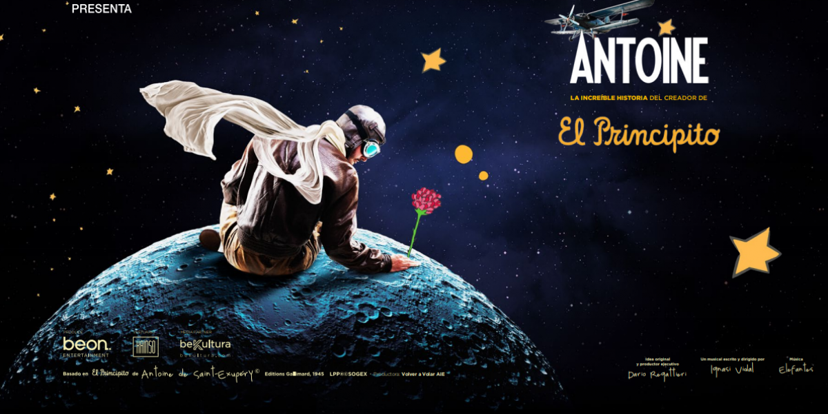 Tras el éxito alcanzado en su estreno de Madrid, se ha presentado “Antoine”, una comedia musical inspirada en Antoine de Saint-Exupéry, aquel intrépido aviador francés que cubrió las primeras líneas aéreas entre Europa y África cuando los pilotos pioneros volaban con aviones casi de juguete, algo que estuvo a punto de costarle la vida en Libia. Fue jefe de escala de la compañía Aeropostale en el poblado español de Cabo Jubi, vivió luego en Sudamérica, viajó por medio mundo, ejerció como periodista, escribió varios libros de memorias y una novela, muchas crónicas y un cuento, “El pequeño príncipe”, que es un verdadero clásico de la literatura infantil de todos los tiempos y, cuando estalló la segunda guerra mundial, se instaló en Estados Unidos desde donde regresó a Europa para intervenir en la contienda como aviador al servicio de los aliados, lo que le costó desaparecer en acción de guerra en 1944. Parece que últimamente se localizó su avión en los fondos cercanos a la costa de Lyon.