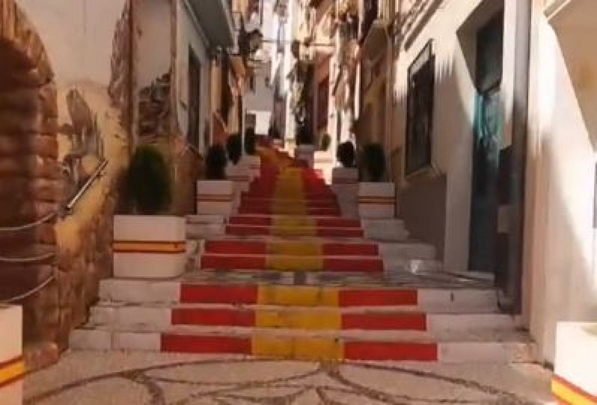 La calle en cuestión se llama Puchalt y se encuentra en el casco antiguo de esta localidad costera. Y si tantos turistas la fotografían y se sacan fotos en ella es porque está compuesta con multitud de escalones pintados con dos franjas rojas y una amarilla, es decir, formando la bandera de España. Así, la calle Puchalt de Calpe es estrecha, colorida y llamativa.